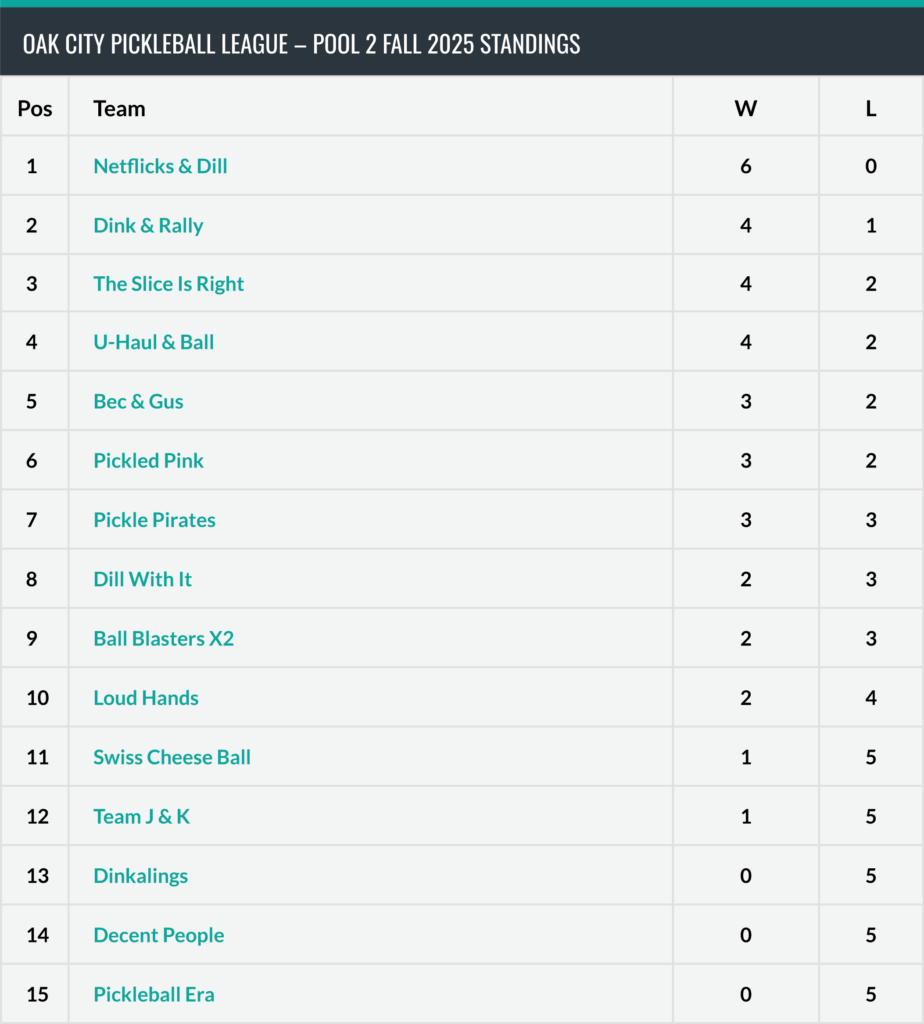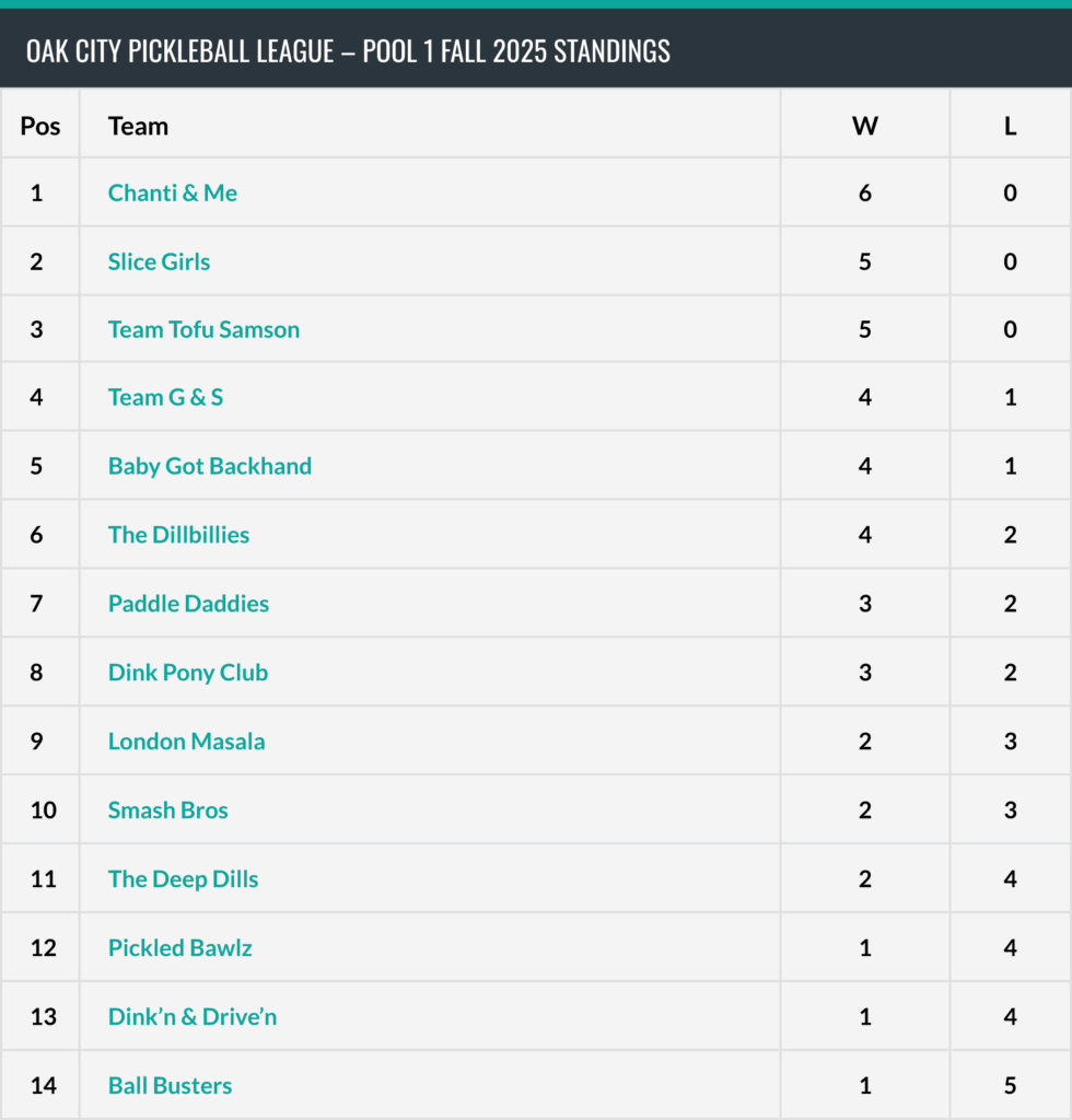 Our 7th season of league play started on October 6th at our new pickleball home – Pin Point Pickleball & Indoor Golf. We’re now onto matches in two pools based on scores from opening night; the results from our first matches by both pools are reflected in the leaderboards below. We’ve started strong at our new facility, with two near sell-out seasons at Pin Point!