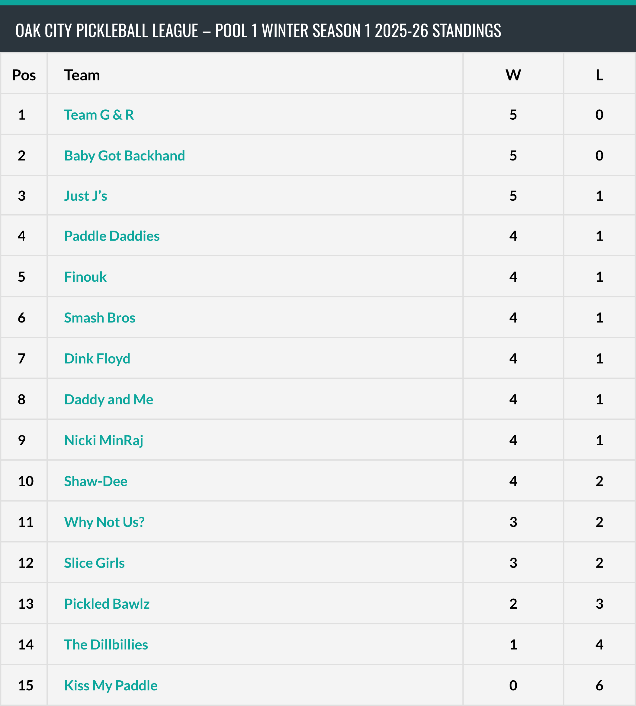 OAK CITY PICKLEBALL LEAGUE LEAGUE SPONSOR – WINTER SEASON 1